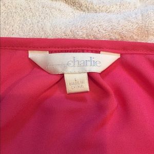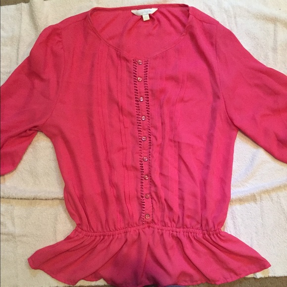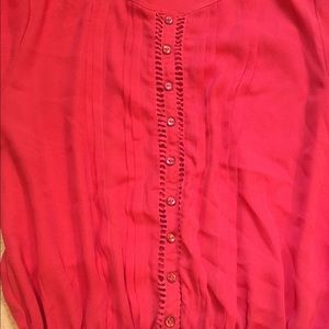 Stylish bright pink top! Does not unbutton, flare at the bottom. Super stylish with white skinny pants!