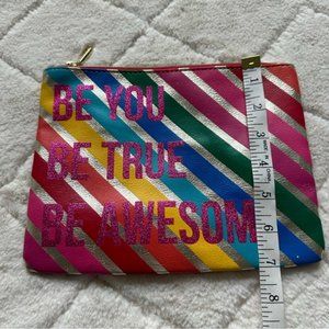 Charming Charlie | "Be You, Be True, Be Awesome" Rainbow Glitter Makeup Bag