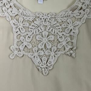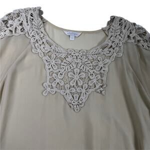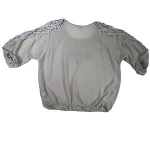 Charming Charlie Beige Semi Sheer Chiffon Crochet Lace Trimmed Blouse Top Small