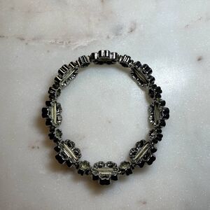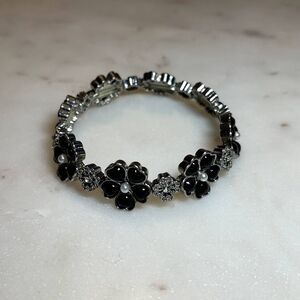 Charming Charlie Black And Silver Flower Stretch Bracelet