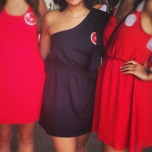 Charming Charlie Black One Shoulder Dress w Ruffle