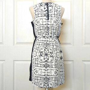Charming Charlie Black and White Floral Print Sleeveless Blouson Dress. Lightweight. zipper in the back, V-neckline, elastic waist band, slimming black sides, lined. Polyester