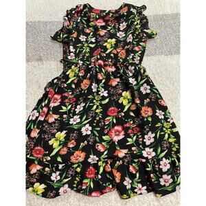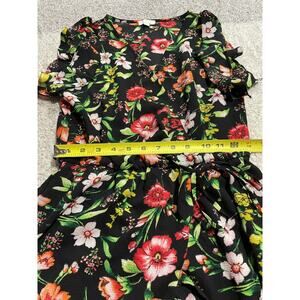 Charming Charlie C Women's Size Small Short Sleeve Floral Faux Wrap Dress Black