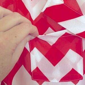 In good used condition. Does have black mark on the lower back as pictured. Have not tried to get out. Lightweight, sheer style with 3/4 sleeves that can be worn buttoned up with pearl buttons on each sleeve. 2 front pockets. Bundle with other items for additional savings and feel free to make offers 😁