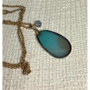 Charming Charlie Denim Blue 2" Long Stone on Gold Tone Chain Necklace - 28" (Sweater Length)