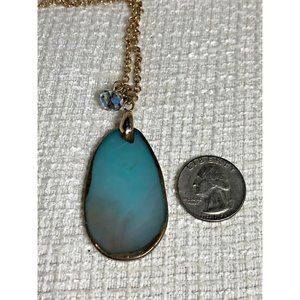 Charming Charlie Denim Blue 2" Long Stone on Gold Tone Chain Necklace - 28"