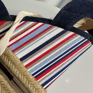 Charming Charlie Denim Espadrille Red/Blue/white Striped Wedge Sandals Size 9