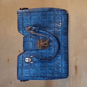 Charming Charlie Elegant Blue Crocodile-Embossed Handbag