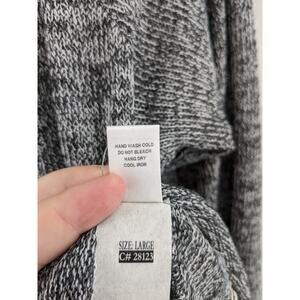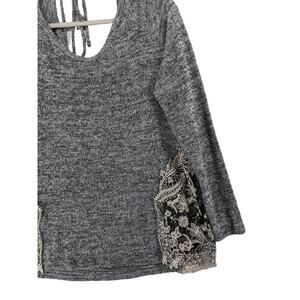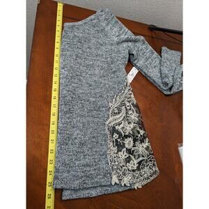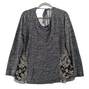 Charming Charlie Embroidered Sweater L Black Long Sleeve Accent Knit Tie in Back