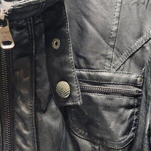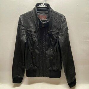 Charming Charlie Faux Leather Moto Jacket Women's Large Black Full Zip (Read)
