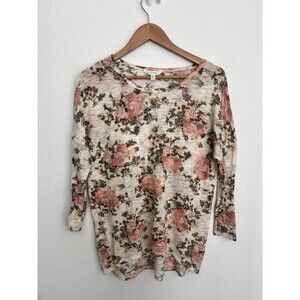 Charming Charlie Floral Print Lightweight Sweater Top S Cottage Coquette Dainty