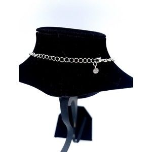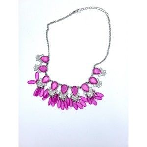 Charming Charlie Silver Tone Necklace with clear and pink rhinestones and Dangling beads. Measures approximately 17.5 to 20.5". Very good pre-owned condition. Please see pictures.