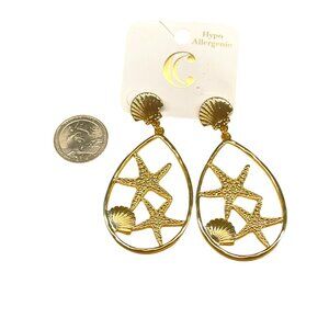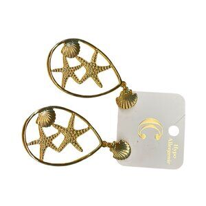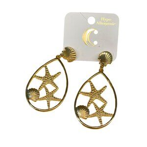 Charming Charlie Gold Starfish & Seashell Teardrop Hypoallergenic Earrings For W