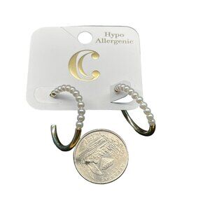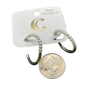 Charming Charlie Gold-Toned Hypoallergenic Pearl Beaded Hoop Earrings MSRP 16