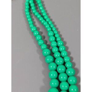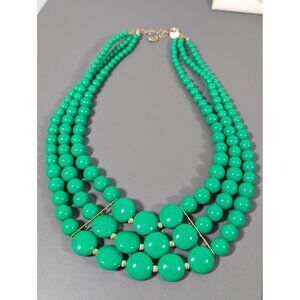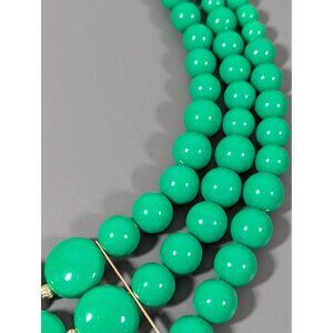 Charming Charlie Green Triple Strand Beaded Statement Bib Necklace 21"