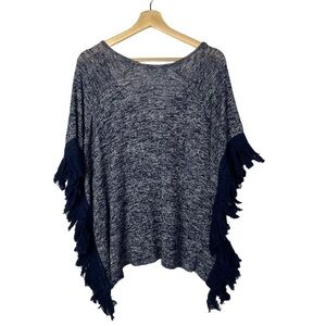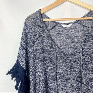 Charming Charlie Heather Blue Fringe Sleeve Knit Short Sleeve Blouse M
