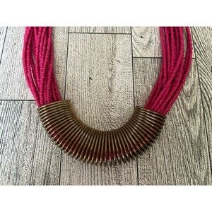 Up for sale is this Charming Charlie Hot Pink Bronze Tone Seed Bead Layered Necklace Earrings Set. New.