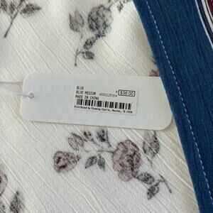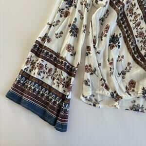 Charming Charlie Krazy Kat Floral Cream and Blue Surplice Long Sleeve Blouse M