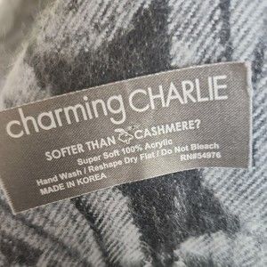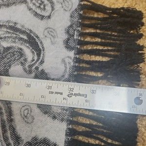Charming Charlie Lightweight Paisley Boho Scarf Wrap with Fringe gray Black.