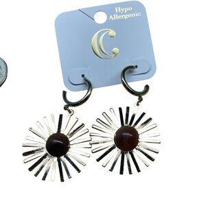 Charming Charlie MSRP $16 Gold & Brown Hypoallergenic Sunburst Dangle Earrings