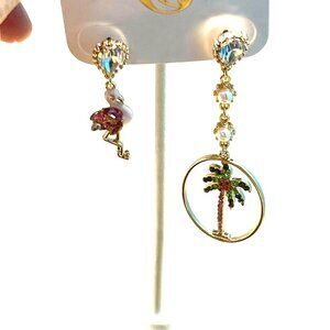 Charming Charlie MSRP 24Flamingo & Palm Tree Dangle Earrings With Crystal Accent
