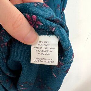 Charming Charlie Midi Dress Teal Blue Purple Floral Frill Long Sleeve