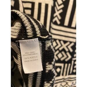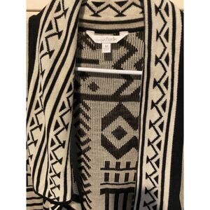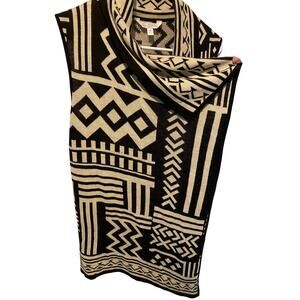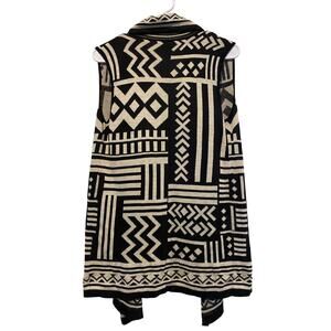 Charming Charlie Open Front Cardigan Vest Medium Black Cream Boho Aztec Tribal