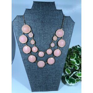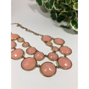 Charming Charlie Peach Facet Stones Lucite Bib Gold Tone Two Strand 18" Necklace