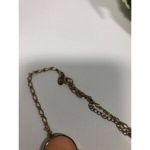 Wear this necklace with neutral tops or pastel dresses to let the peach tones pop, or layer it over a crewneck sweater for a chic weekend look. Its polished shape and hue make it versatile for day or evening wear.