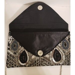 Charming Charlie RSVP Black & Silver Metallic Sequins/Beads Crossbody Purse
