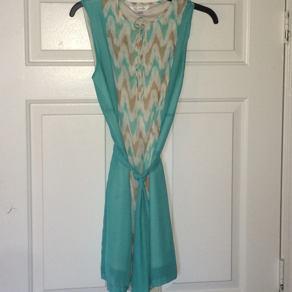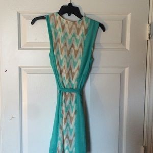 Charming Charlie Seafoam Green/Tan Chevron Dress