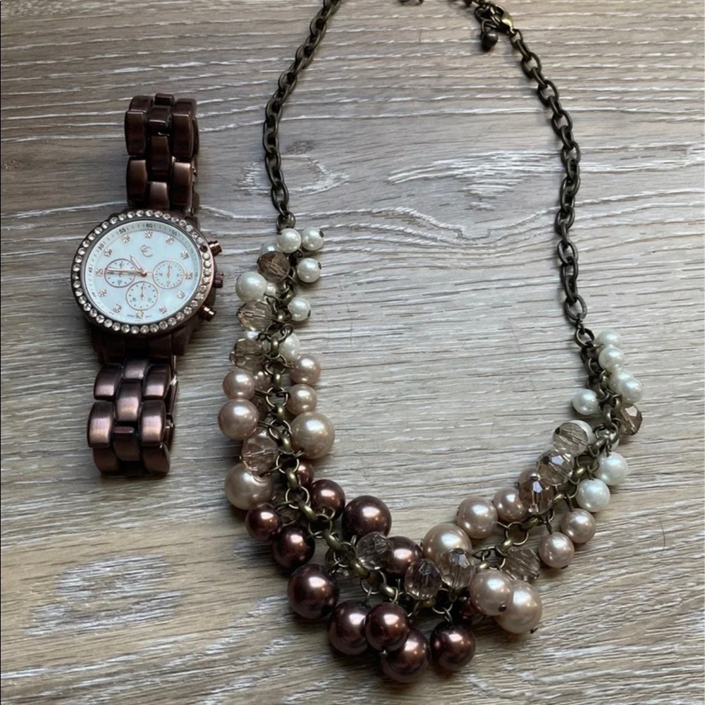 Cute matching set from Charming Charlie between 2009-2011. Smoke free home. Kept in great condition. Only worn a handful of times. Missing one gem in watch. Will come with a brand new battery