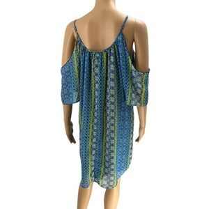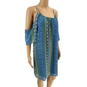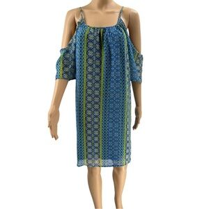 Charming Charlie Shift Cold Shoulder Dress - Yellow/Blue/White Size M