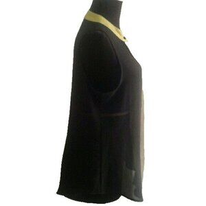Charming Charlie Size Small Blouse Sleeveless Black Yellow Button Detail Sheer