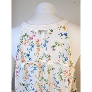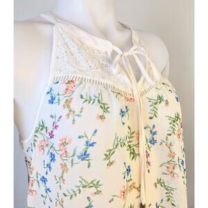 Charming Charlie |Tank Top Sleeveless Blouse White Floral Tie / V Neck Size Medium