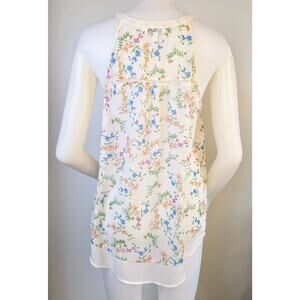 Charming Charlie Sleeveless Blouse White Floral Sheer V Neck Flowy Size Medium