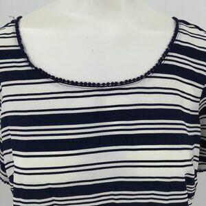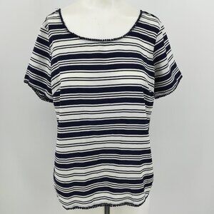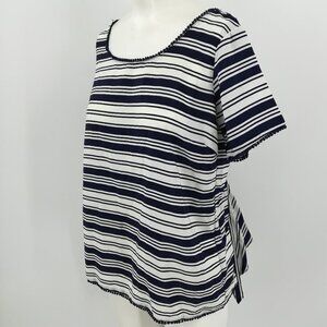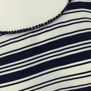 Charming Charlie Striped Top Size S Ruffle Sheer Lower Back Lace Trim Scoop Neck