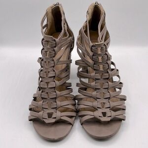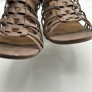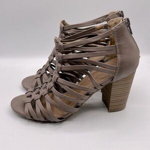 Charming Charlie Tan Strappy Stacked Heel Open Toe Heels Size 7