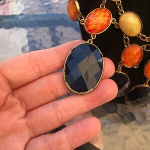 Charming Charlie Vintage Bib Statement Necklace Orange Black