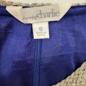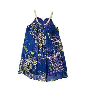 Charming Charlie Women Swing Shift Dress Sparkle Rope Straps Floral Royal Blue Size Small Sleeveless shimmer straps fully lined