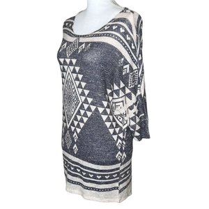 Charming Charlie Women's Boho Dolman Short Sleeve Sweater Size Medium Geometric