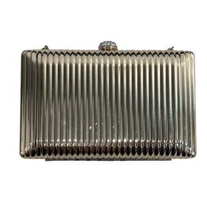 "Charming Charlie Women's Gold Crossbody RSVP Evening Clutch Purse Sz S is the perfect accessory for any special occasion. This stylish clutch features a single compartment design with a rhinestone adorned button for a touch of elegance. Crafted from durable steel, it promises longevity." It is in a good used conditions with no scuffs or stains. Please refer to the pictures for details.
