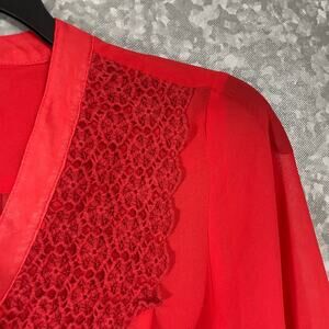 Charming Charlie Women’s Red One Button Flowy Boho Top - Size Small - Lace Trim