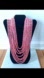 It features multiple layers of acrylic beads in varying shades of pink or rose, accented with small silver-tone spacers to create a full, layered look when worn.