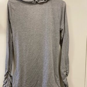 Charming Charlie size large women’s gray ruffled cardigan, long sleeves