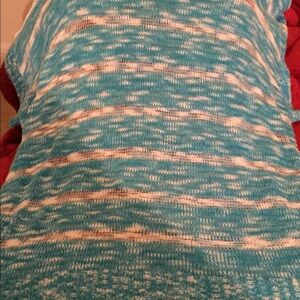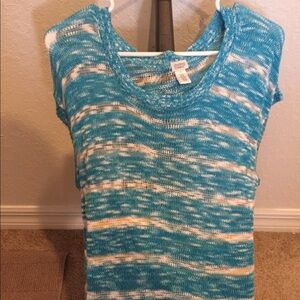 Charming Charlie Turqoise and white striped short sleeve open knit sweater. Wear with cami underneath! Hardly worn. Size S. 50% Acrylic. 50% Rayon. Perfect casual wear!