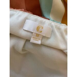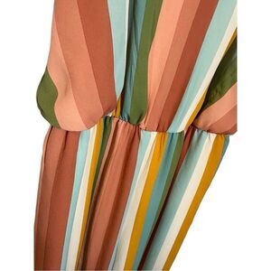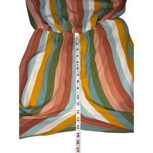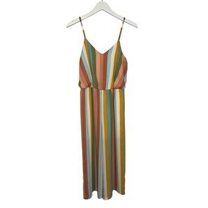 Charming Charlie multi-colored striped jumpsuit with elastic waist and adjustable straps. 3/4 length.