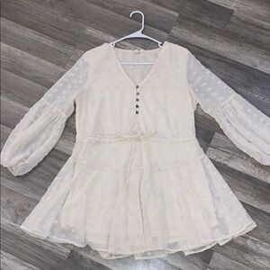 This charming cream dress is perfect for any occasion. Its elegant design and soft fabric ensure comfort and style.