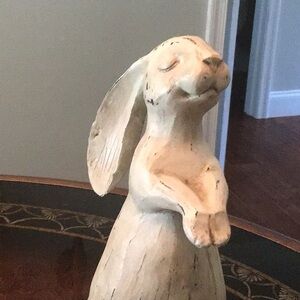 Add a whimsical touch to your home with this charming cream rabbit sculpture. Perfect for any art lover's collection.