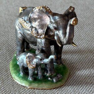 Enhance your decor with this charming elephant figurine, featuring elegant gold and gray accents. Perfect for adding a touch of sophistication to any room.